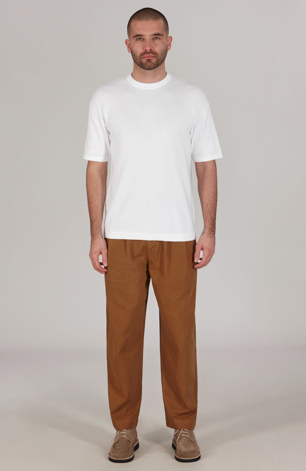 Introducing Ewan, a relaxed, lightweight (290g) addition to our best-selling knitted t-shirt collection. Made from durable, breathable cotton, this t-shirt ensures all-day comfort. We've designed this casual top with a broader chest and a drop shoulder profile, creating a beautiful drape that's perfect for off-duty or streetwear-inspired looks.