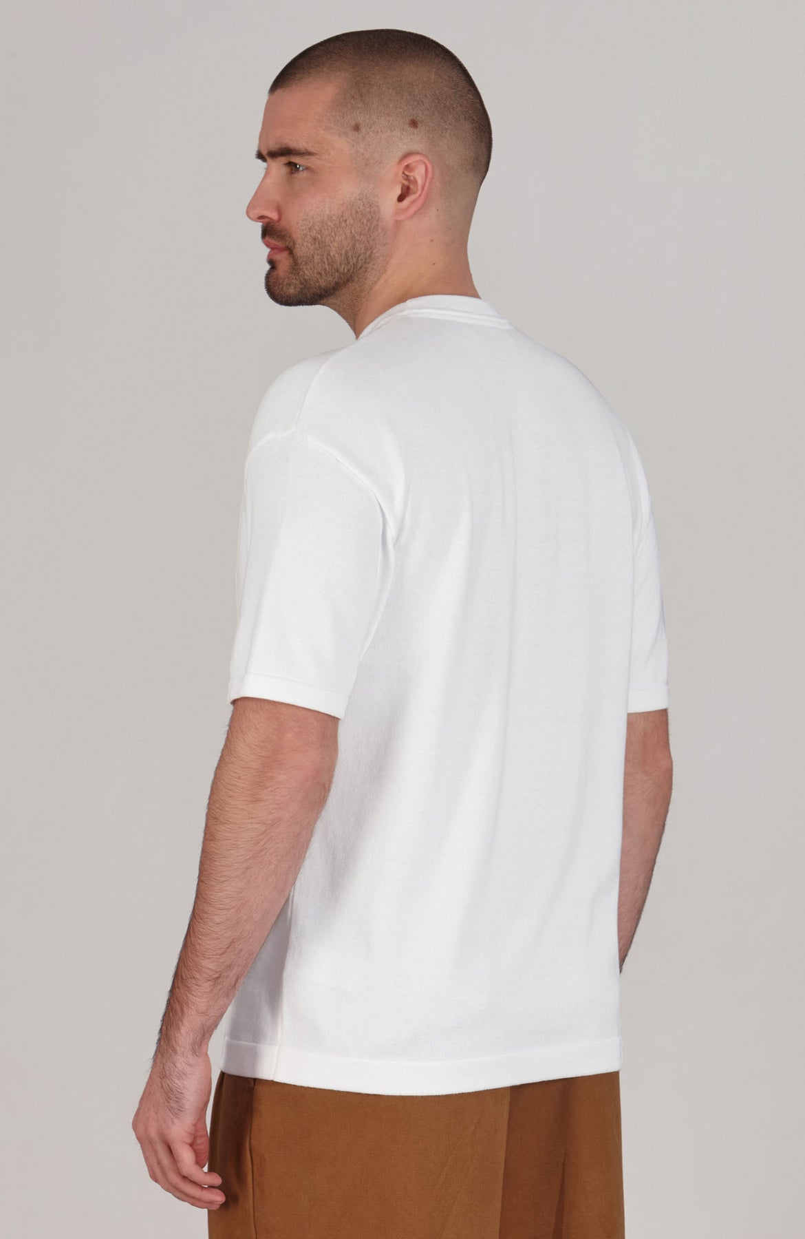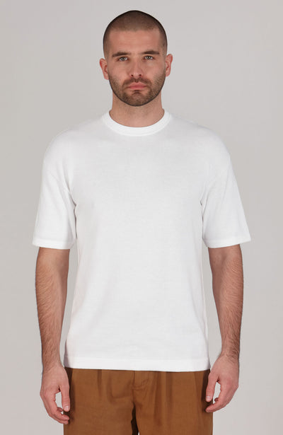 white mens relaxed fit knitted t-shirt
