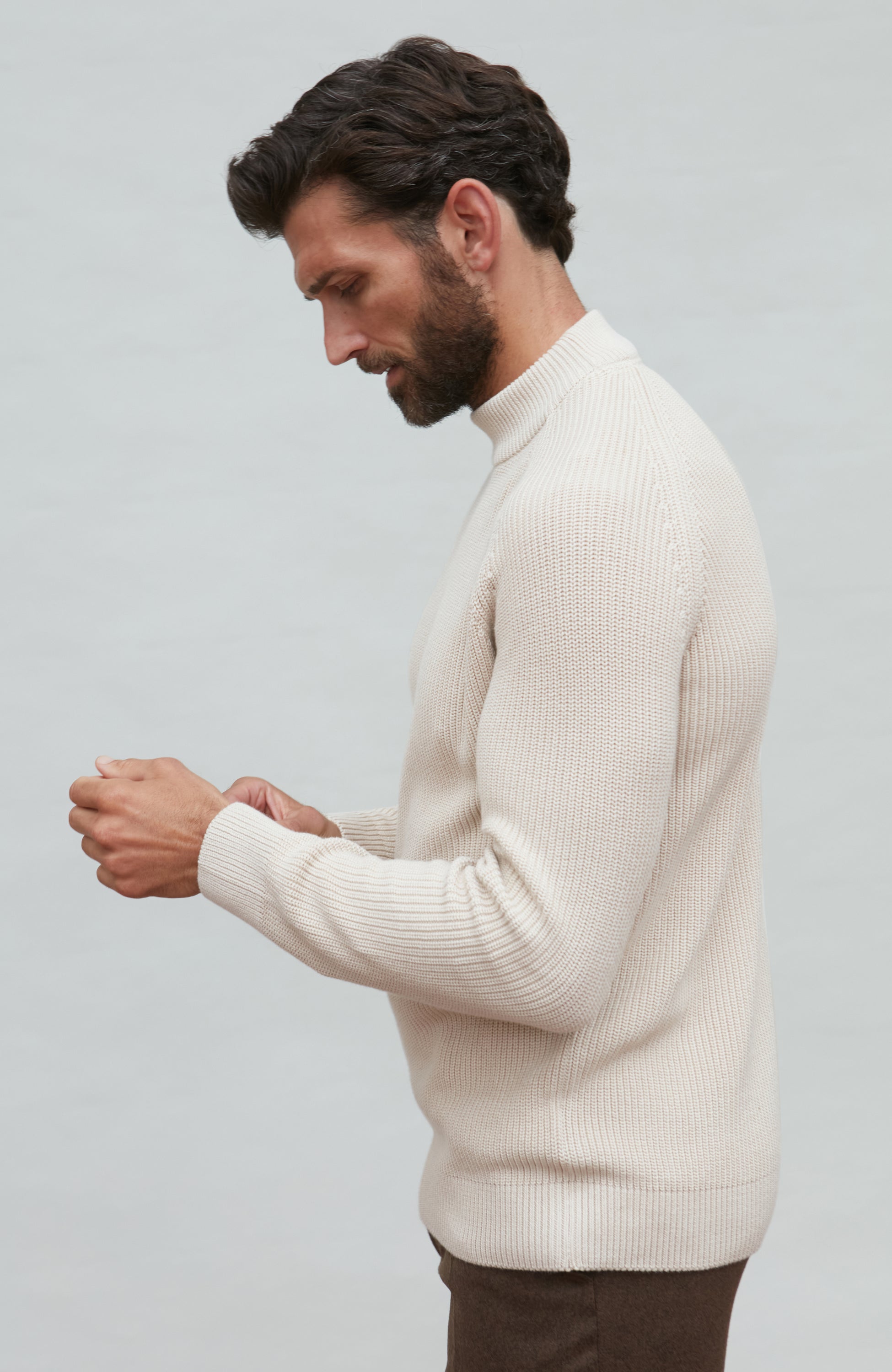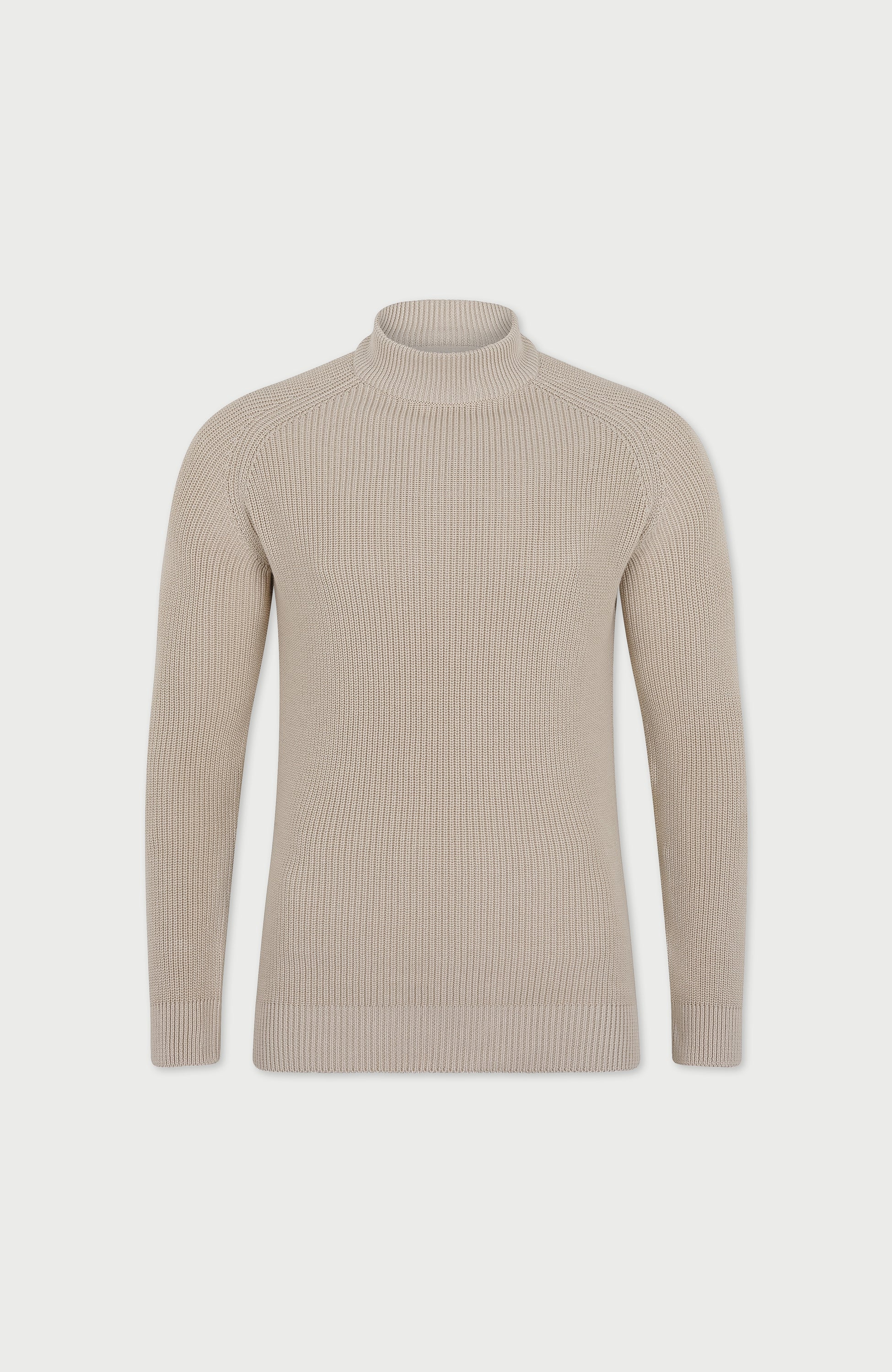 Crafted from our supersoft 100% cotton, the Byrne mock neck sweater offers both comfort and a timeless heritage look. This sweater combines the elegance of a mock neck design with an all-over uniform fisherman stitch detail, and has been handsomely finished with a refined raglan shoulder construction.