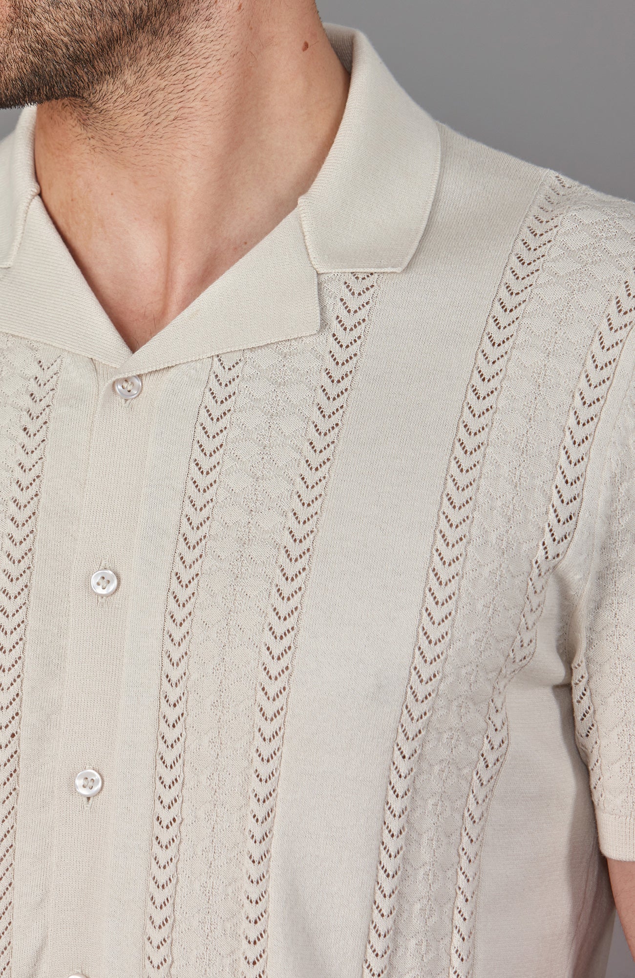 Introducing Santiago, a stylish short sleeve button-through cotton shirt with a Cuban collar neckline and eye-catching all-over textured knit. With its relaxed fit, this easy-to-wear shirt is flattering and comfortable. Made from cool and breathable cotton, this polo shirt is perfect for the warmer months or to refresh your holiday wardrobe.