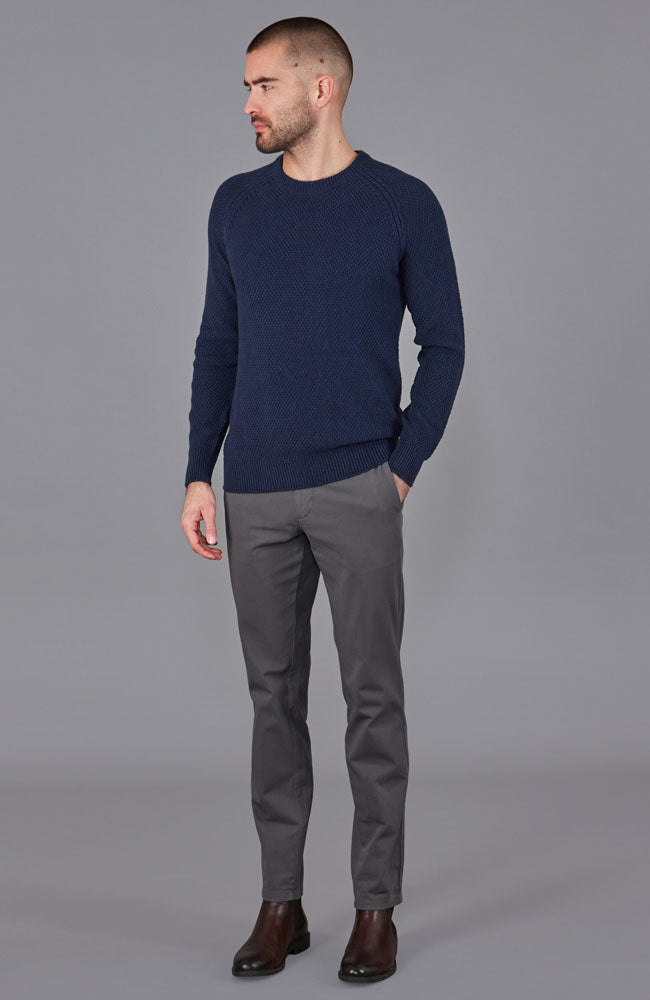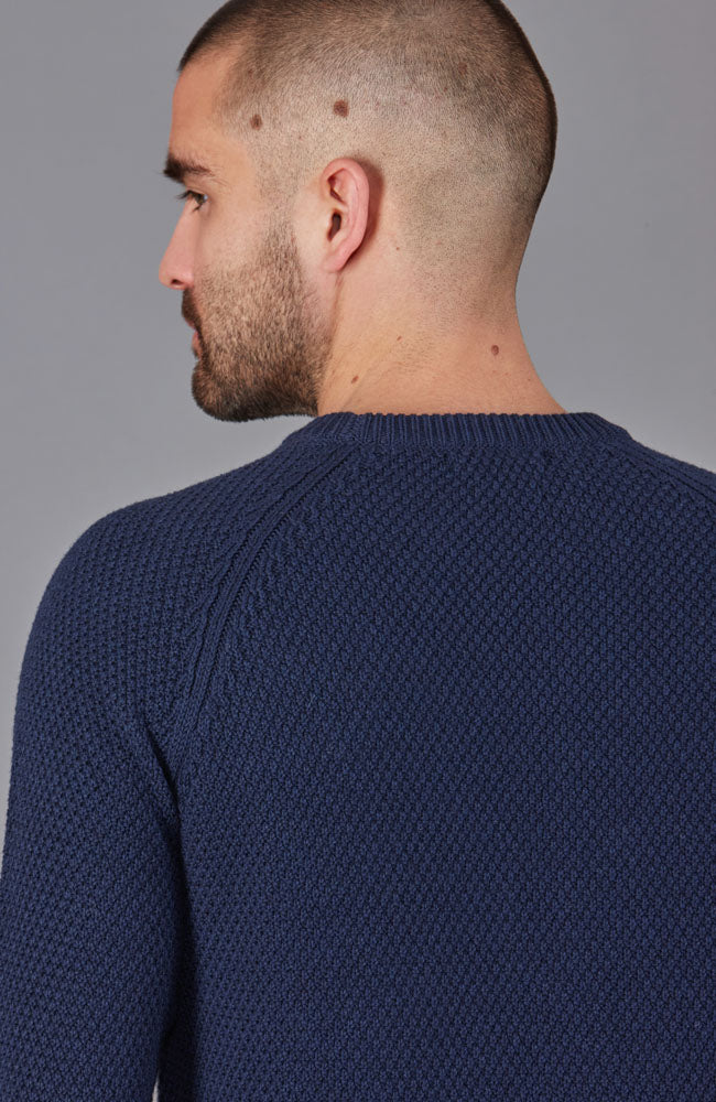 Crafted with the finest Italian spun certified organic cotton, our Angus sweater is knitted at our Leicestershire factory using the latest zero-waste, seamless knitting machines for optimal comfort. The moss stitch texture makes for a smart or casual look, and the raglan armholes with stitch detail adds a stylish, elevated touch. Cotton is breathable and cool to skin, which makes this jumper the perfect layer underneath a coat, or on it's own on a mild Spring Summer day.