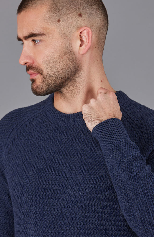 Mens Organic Cotton Moss Stitch Raglan Jumper