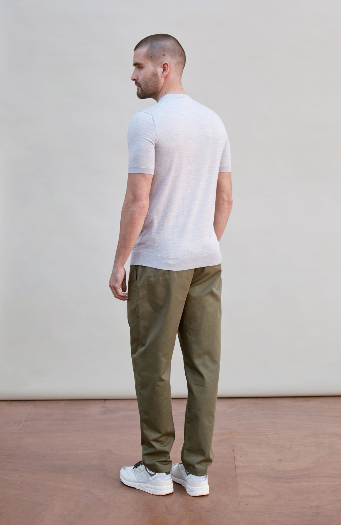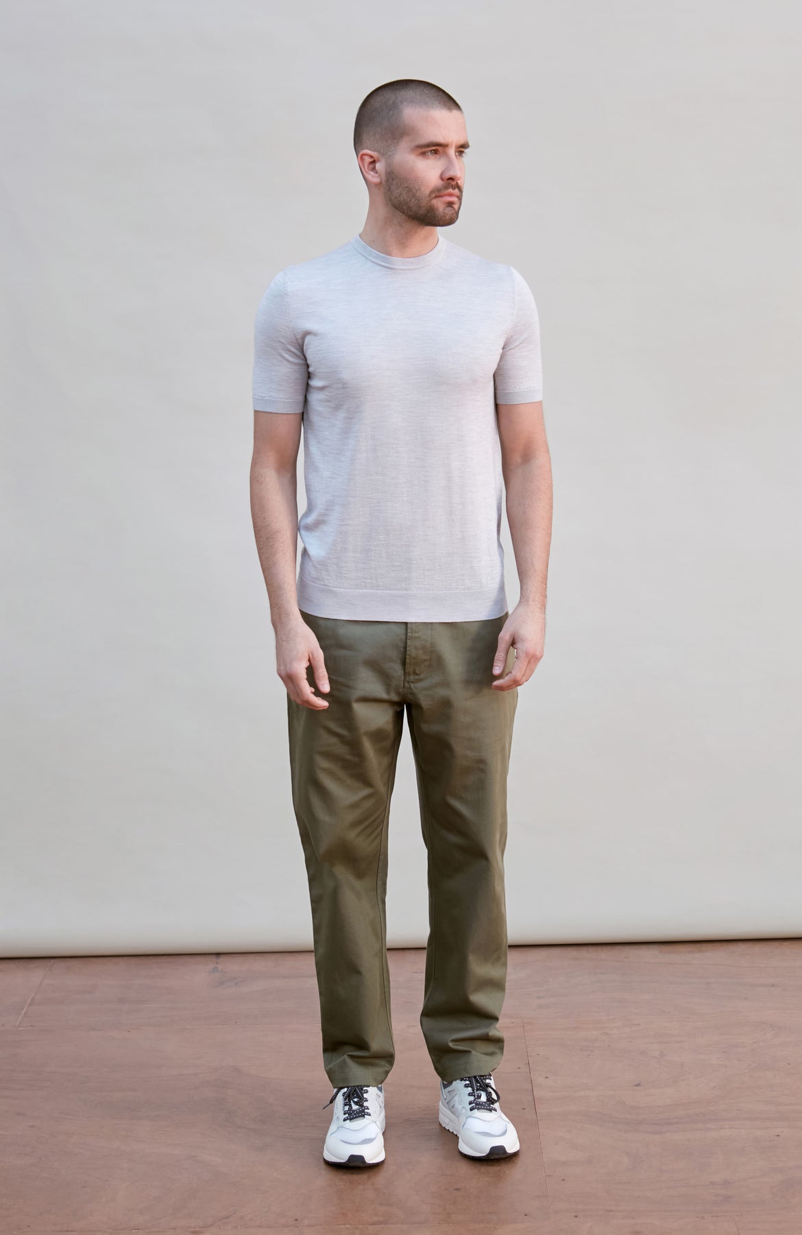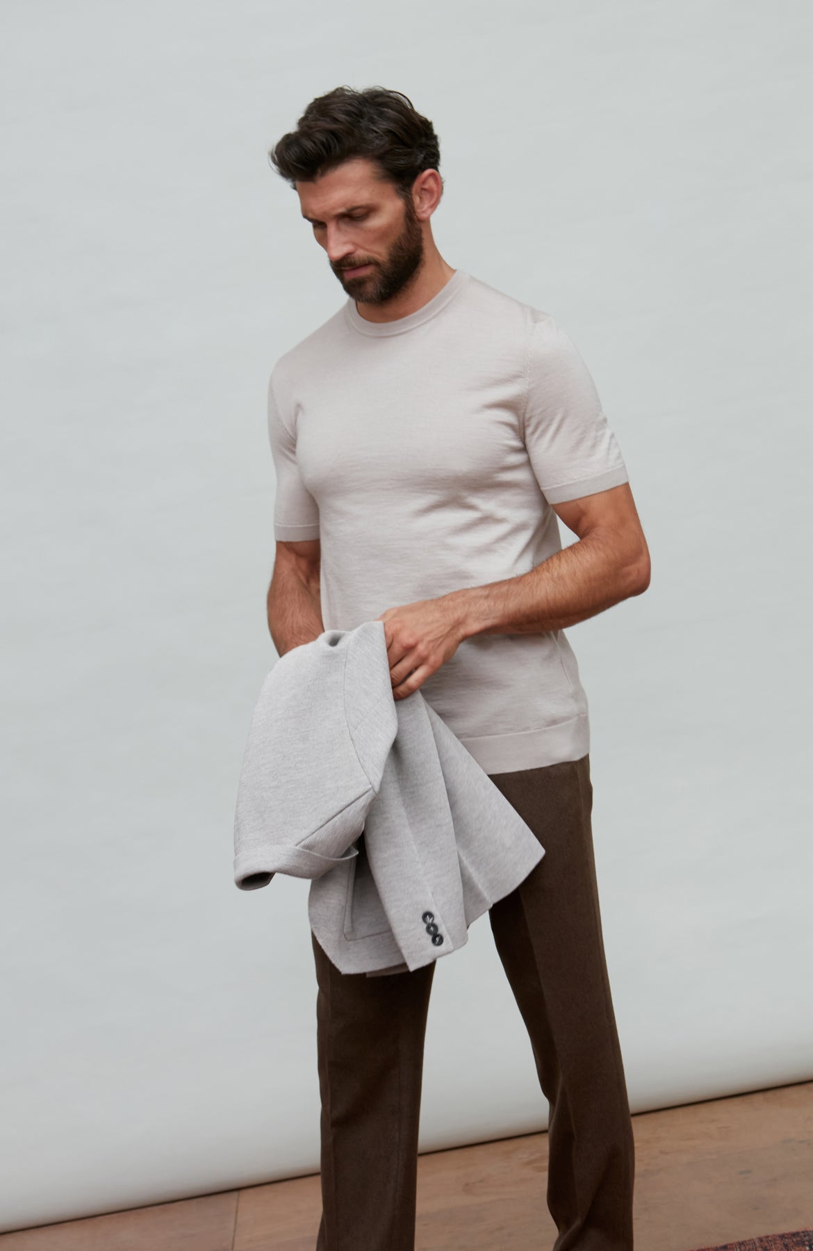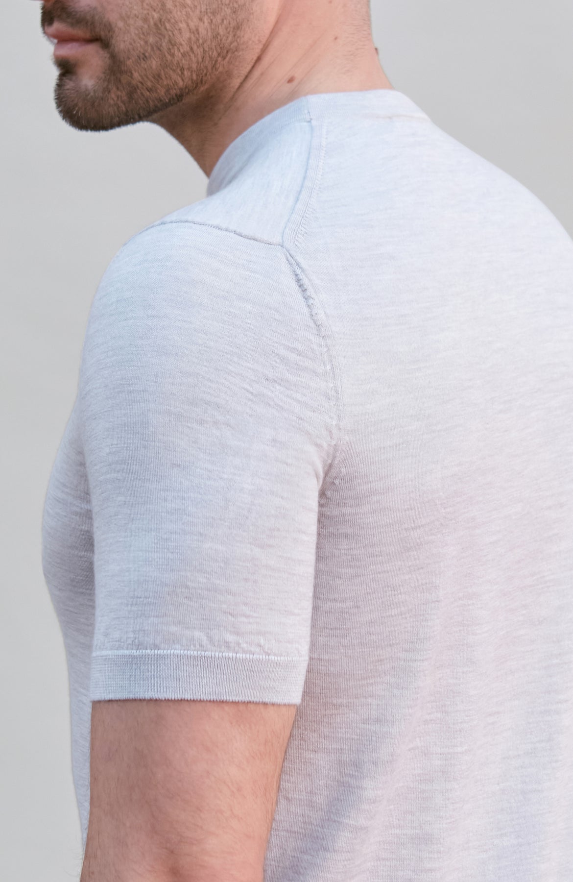 Bellini is a robust crew neck short-sleeve knitted jumper crafted from an Italian-spun blend of 70% superfine merino wool and 30% silk, designed for refined comfort across all seasons. Lightweight and breathable, it’s perfect for travel or long days and naturally resists odour, creasing, and moisture.