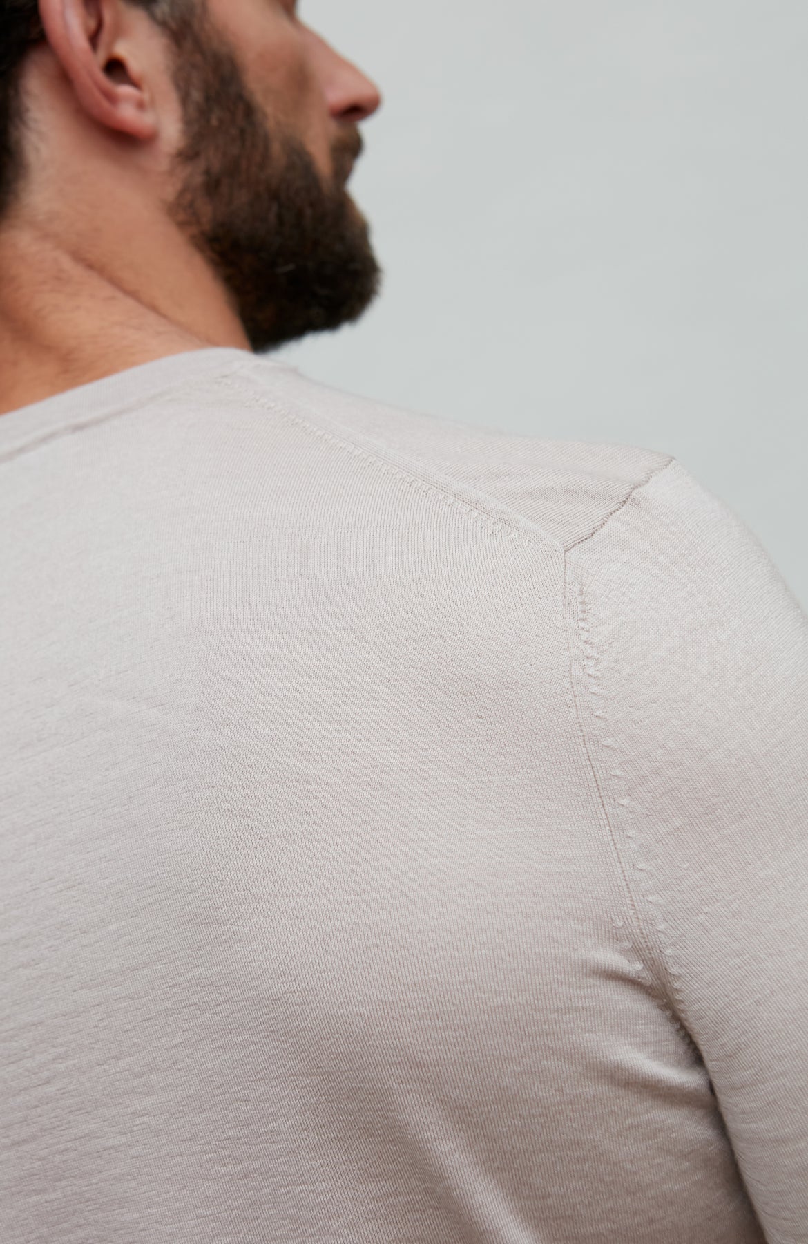 Slightly longer sleeves enhance its versatility - smart enough to wear under tailoring, breathable and soft enough for warmer days. Designed for elegant layering and everyday elegance.