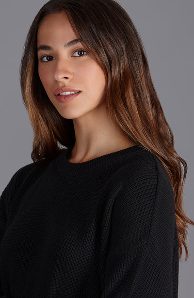 womens black fisherman cotton rib jumper close up