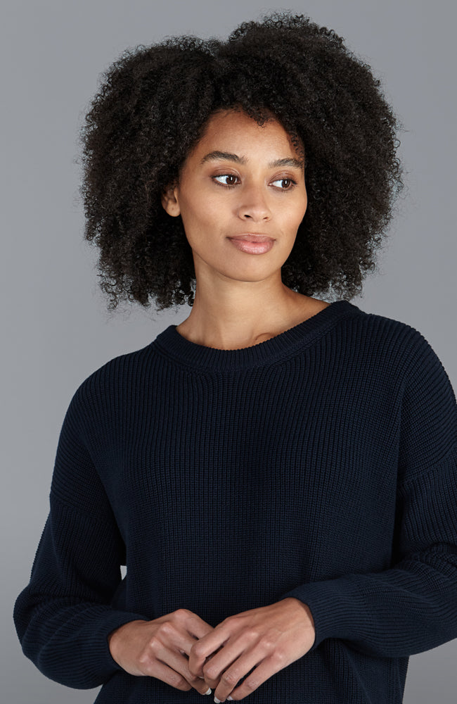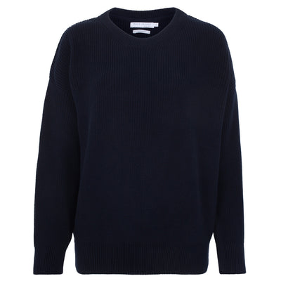womens navy fisherman rib cotton round neck jumper