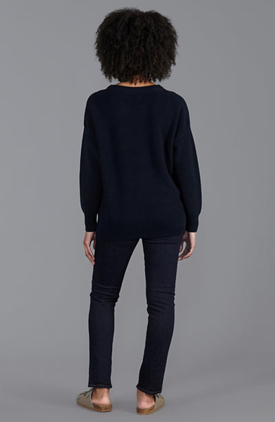 womens navy fisherman rib cotton round neck jumper back