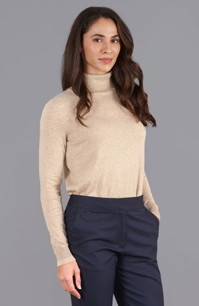 Womens Ultra Fine Cotton Roll Neck Long Sleeve Jumper