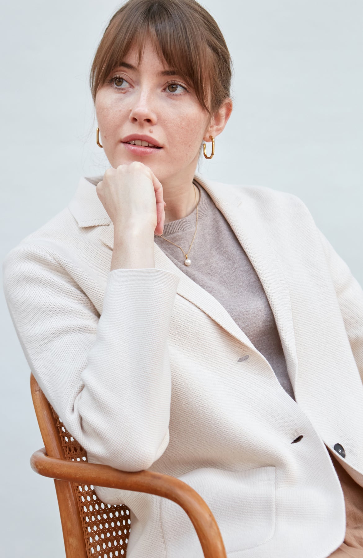 Tara is a timeless knitted blazer made from pure cotton and finished with premium Italian-made buttons, two patch pockets and inside pocket detail.