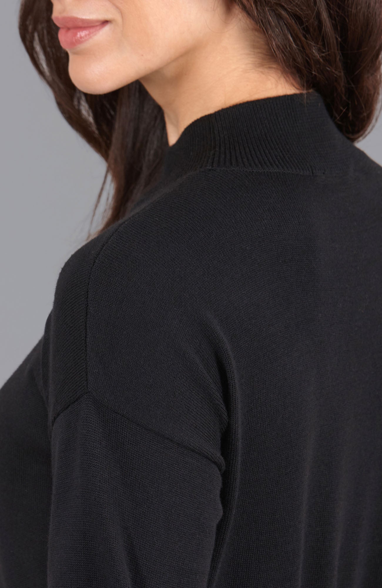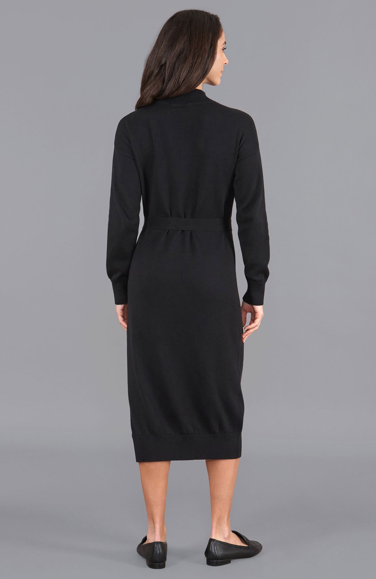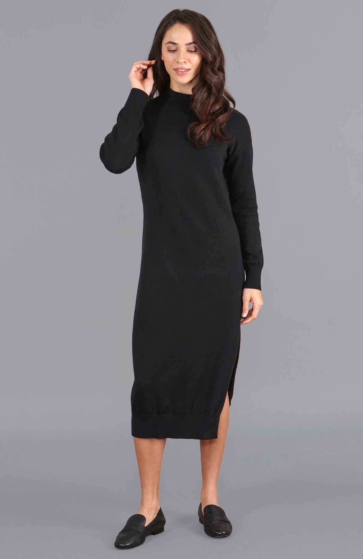 Breathable and soft, we used deep neck ribs to create a comfortable, close-fitting mock turtle neck. Perfect for the office and transitioning from day to night, this timeless knitted dress works year-round, paired with sandals for the summer months or long boots during winter.
