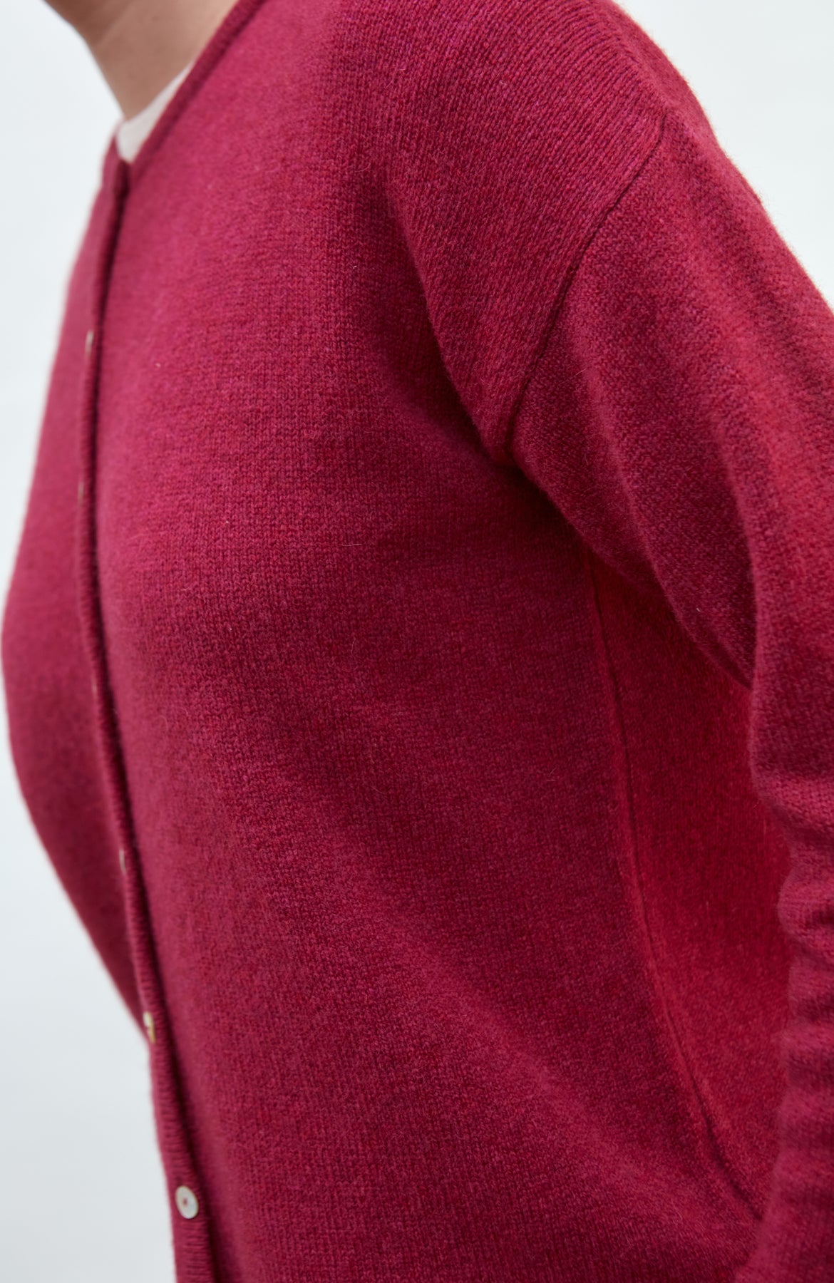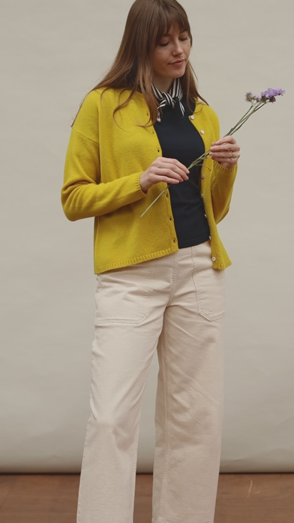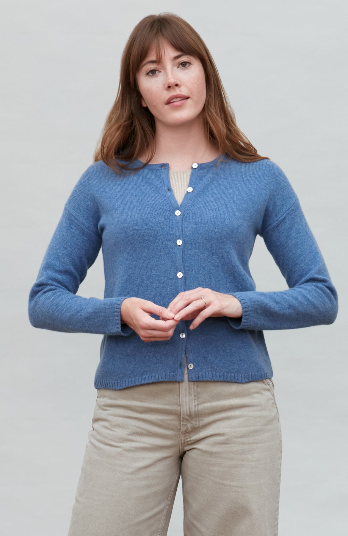 Leona is a classic crew neck long sleeve cardigan with delicate mother of pearl buttons, made from 100% British spun lambswool, sourced from Z. Hinchcliffe & Sons (Estd. 1766). The perfect wardrobe staple for layering, this midweight cardigan is suitable all year round. Pair with everything from your favourite jeans to summer dresses for an elegant timeless look.