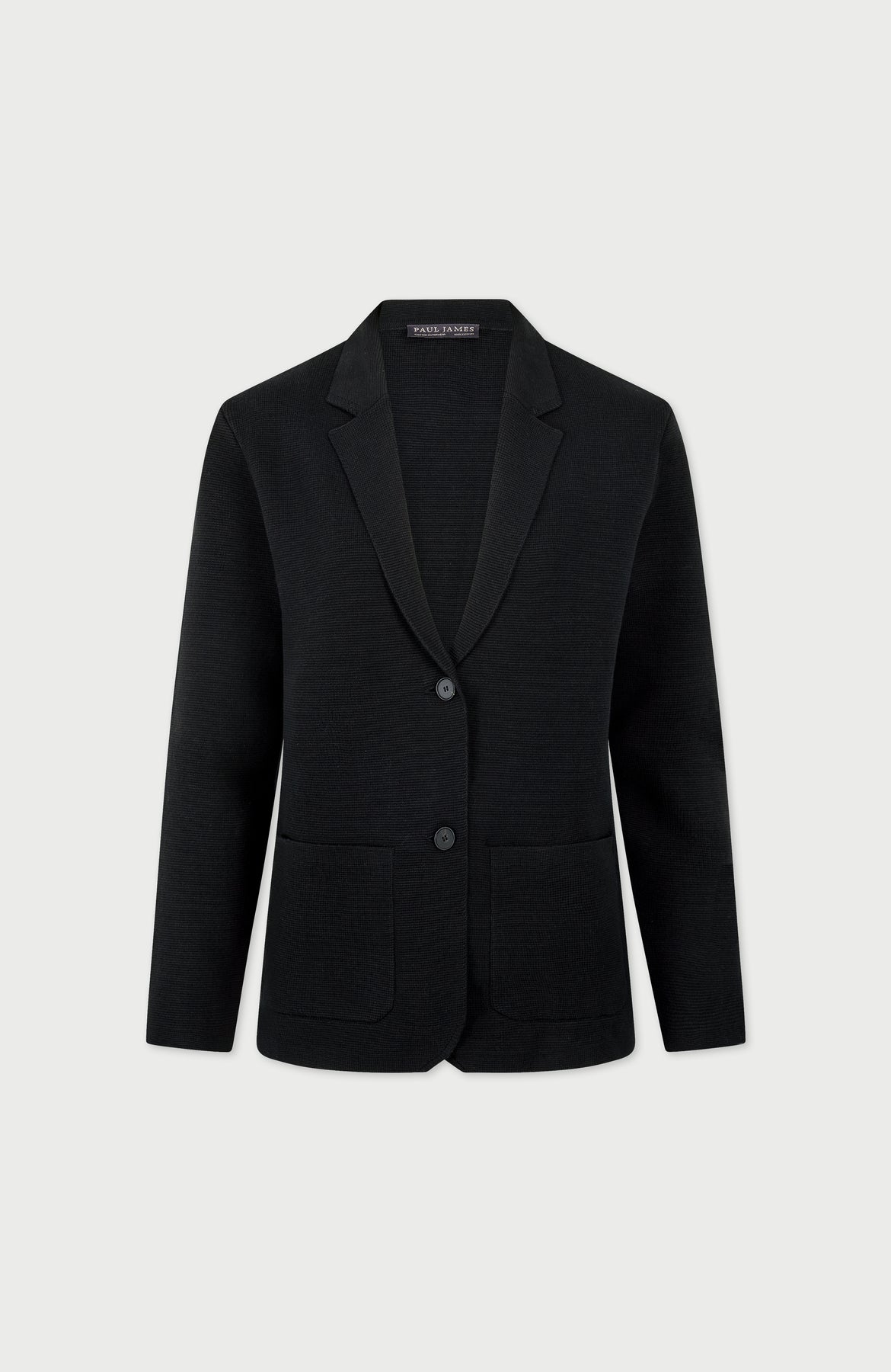 Tara is a timeless knitted blazer made from pure cotton and finished with premium Italian-made buttons, two patch pockets and inside pocket detail.