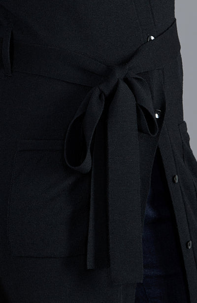 Ladies Long Wool Button Up Tie Waist Cardigan with Pockets