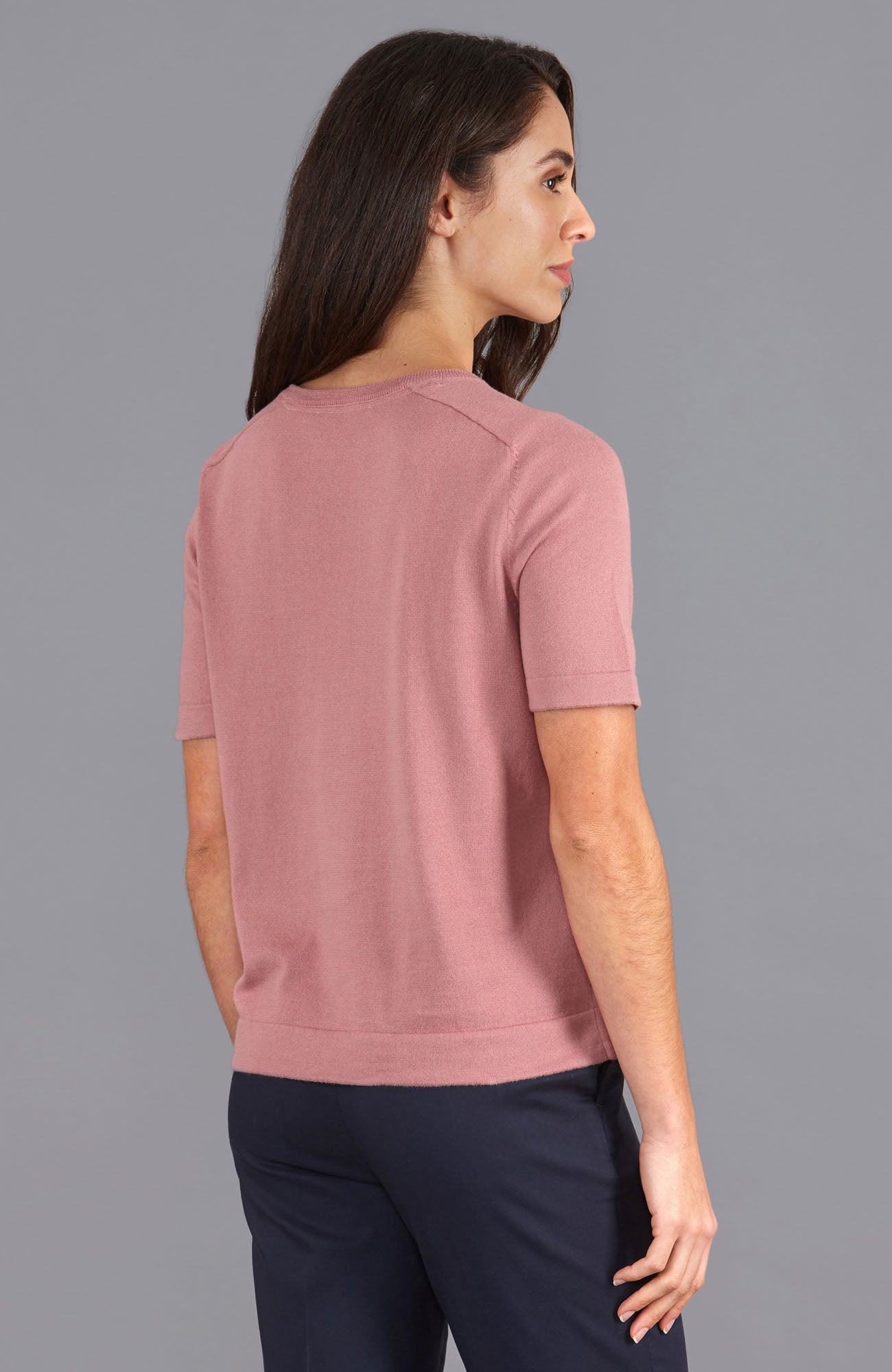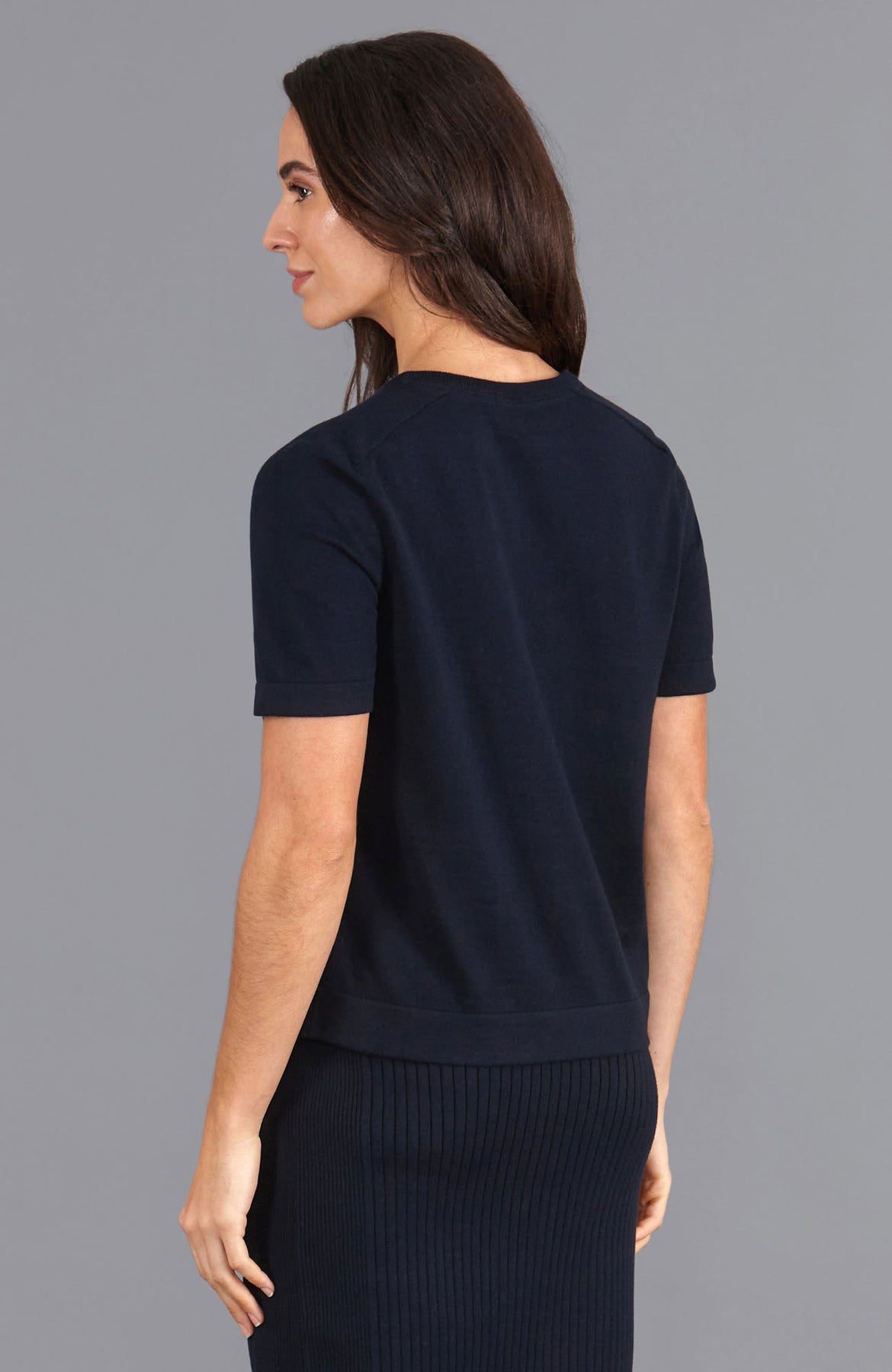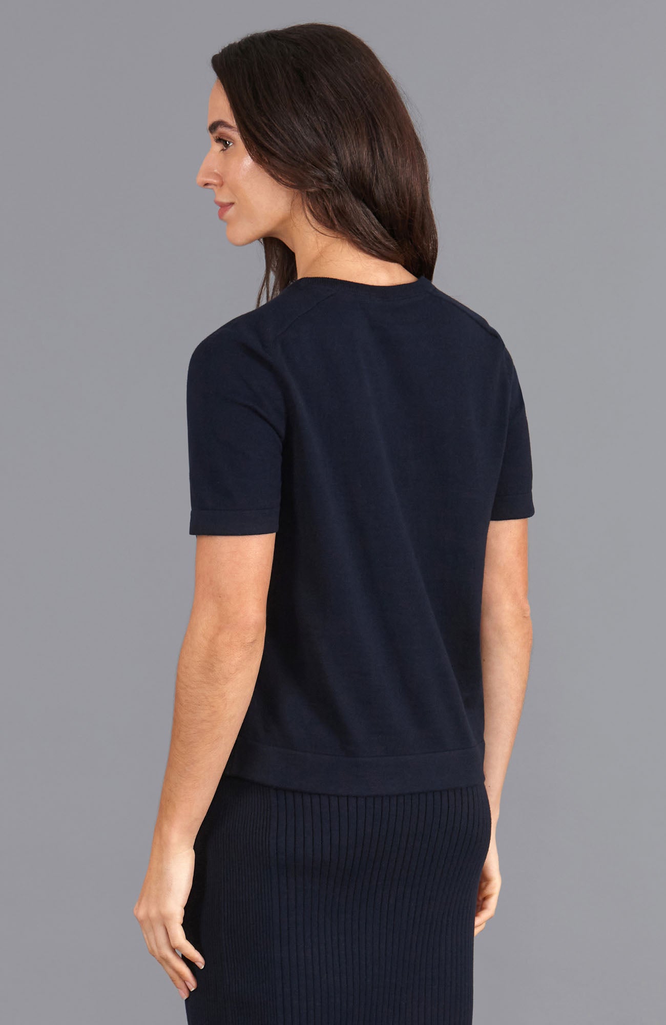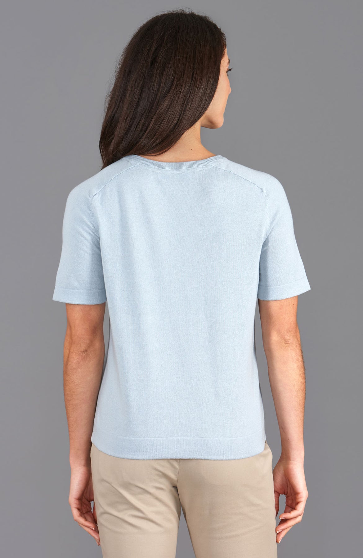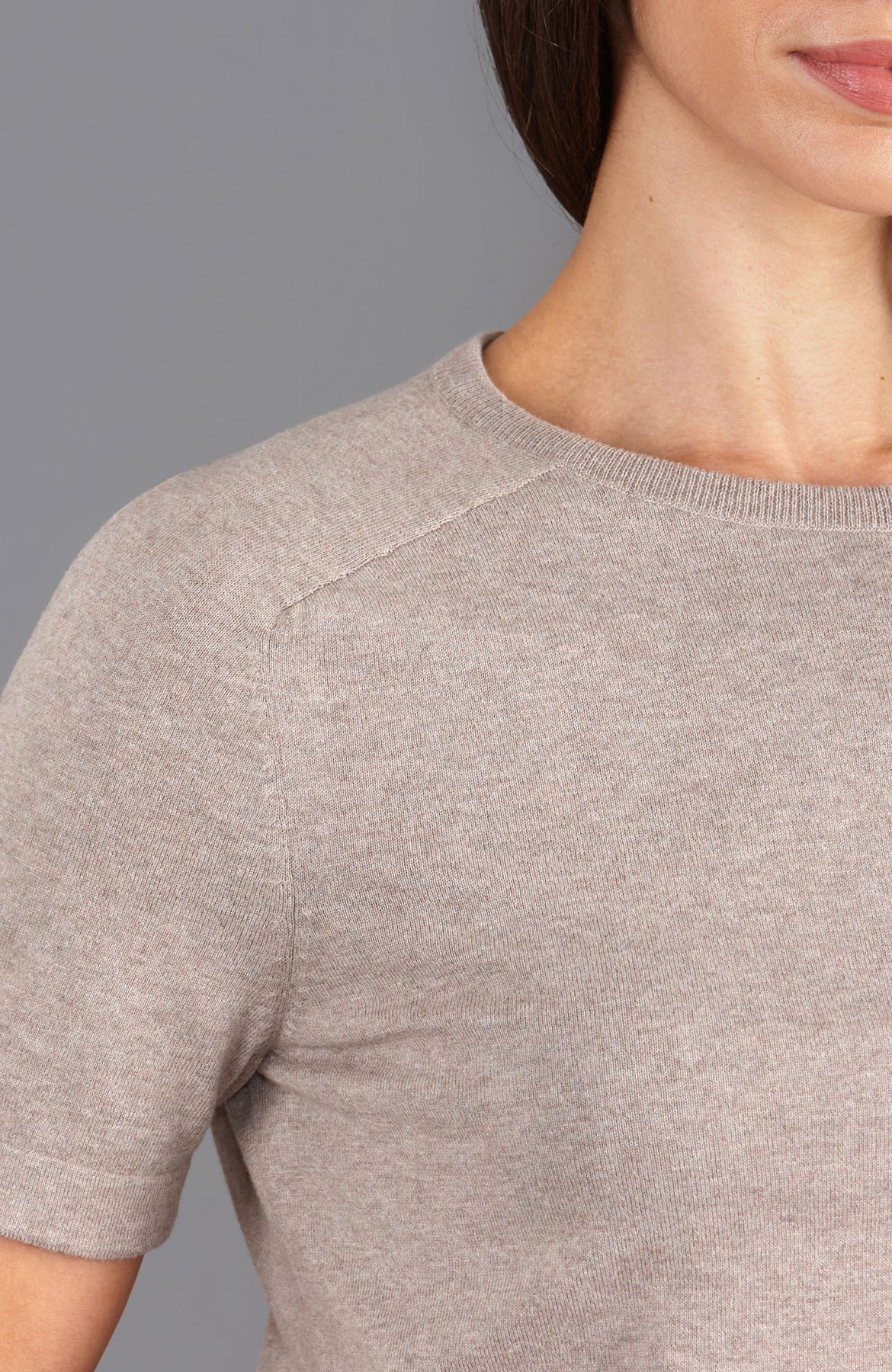 Womens Ultra Fine Cotton Saddle Shoulder Knitted T-Shirt