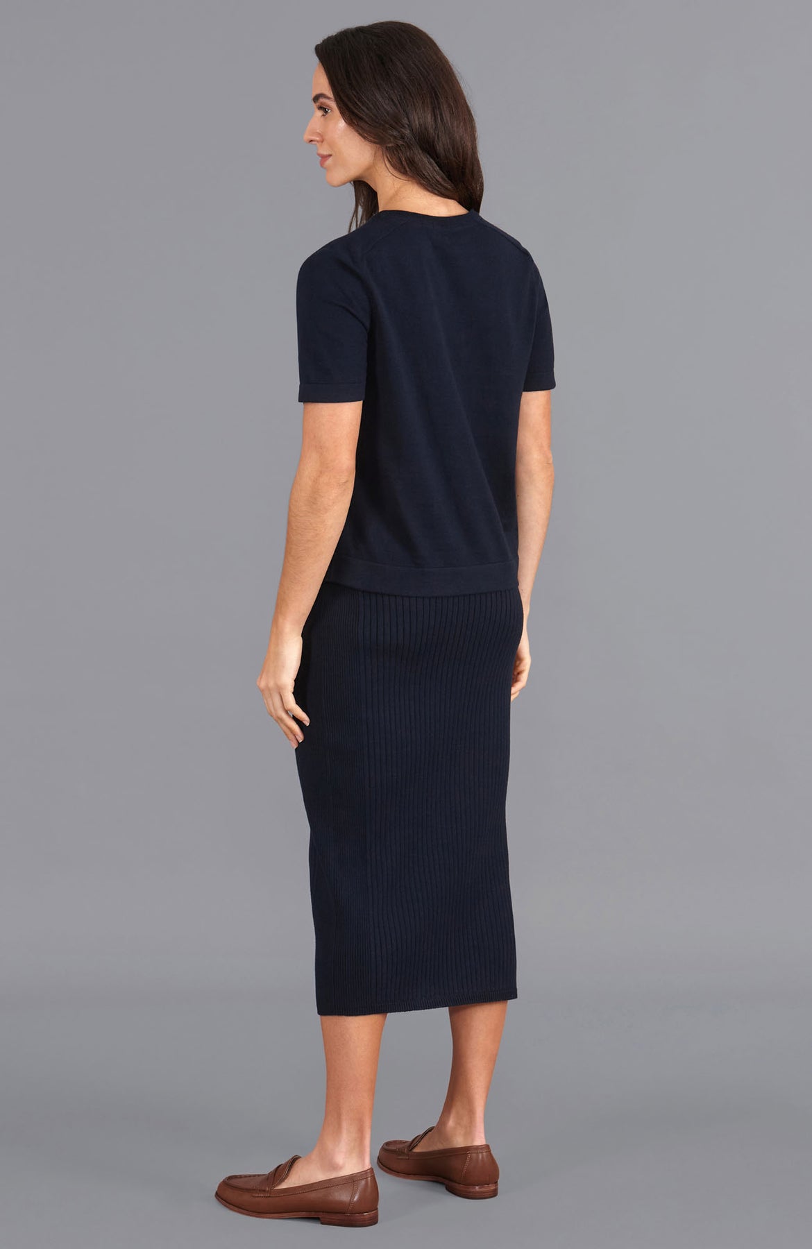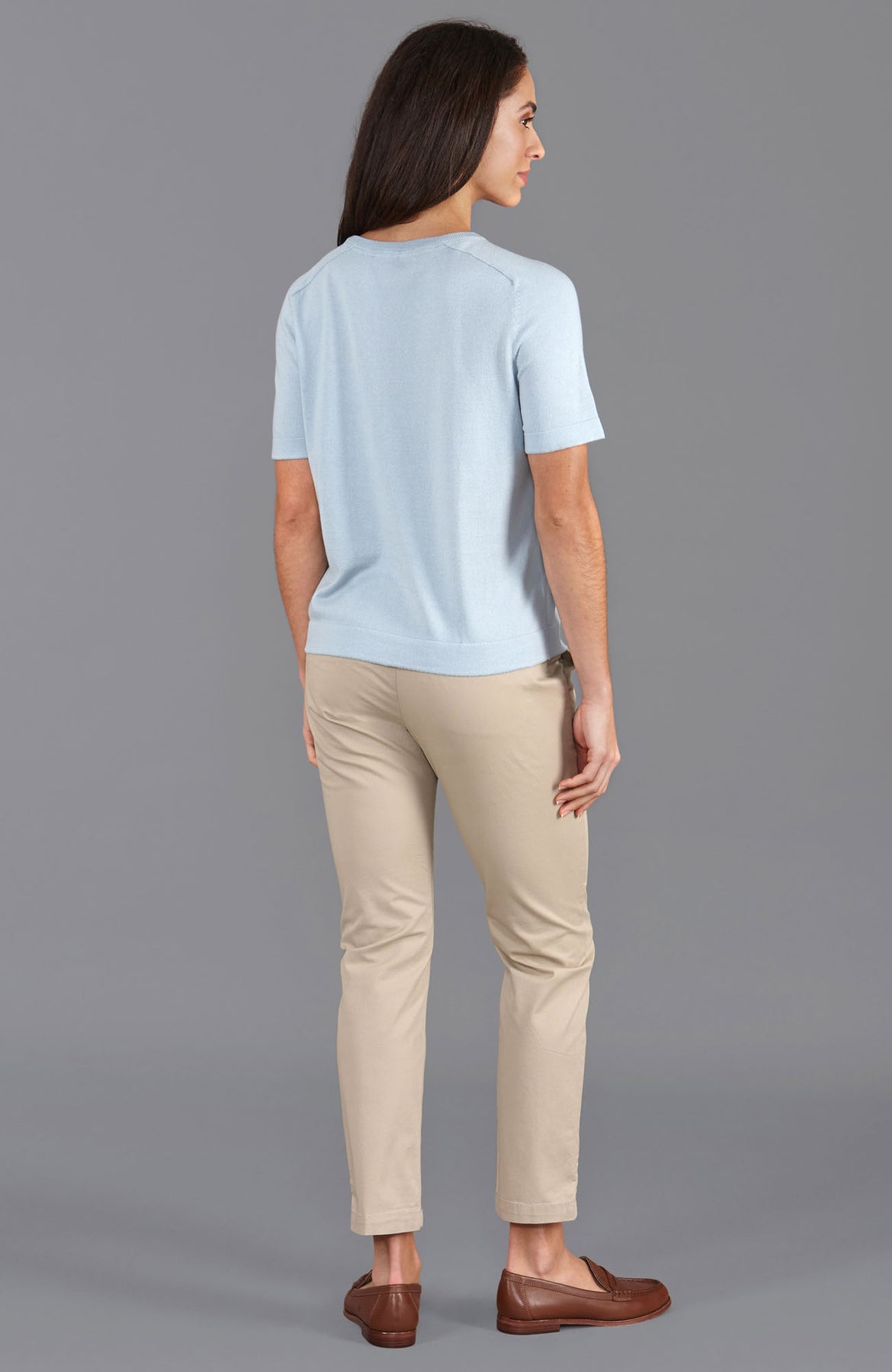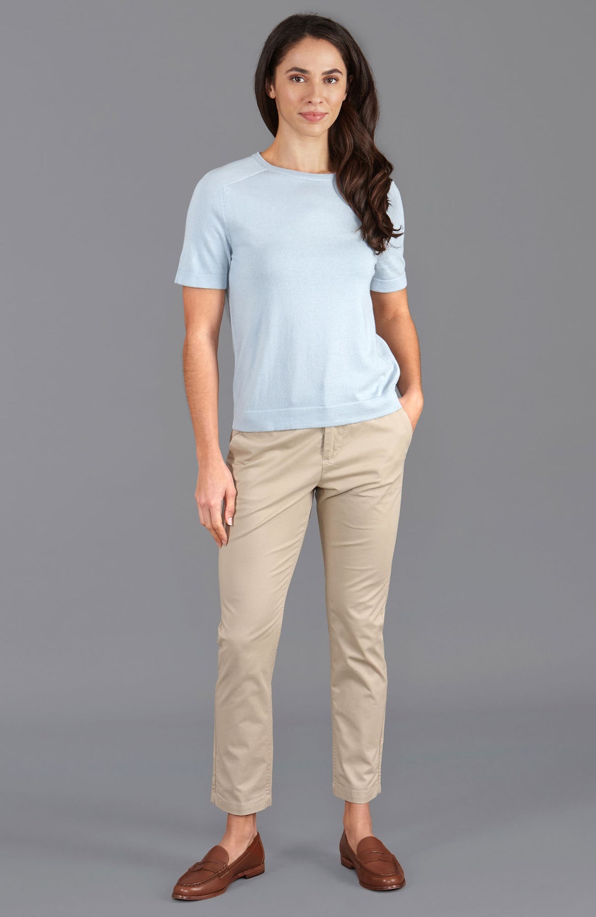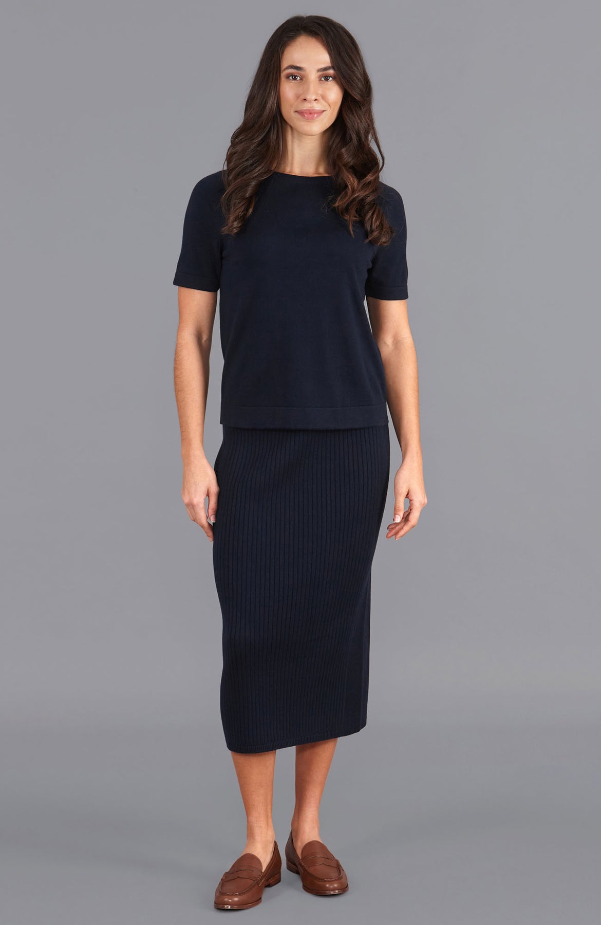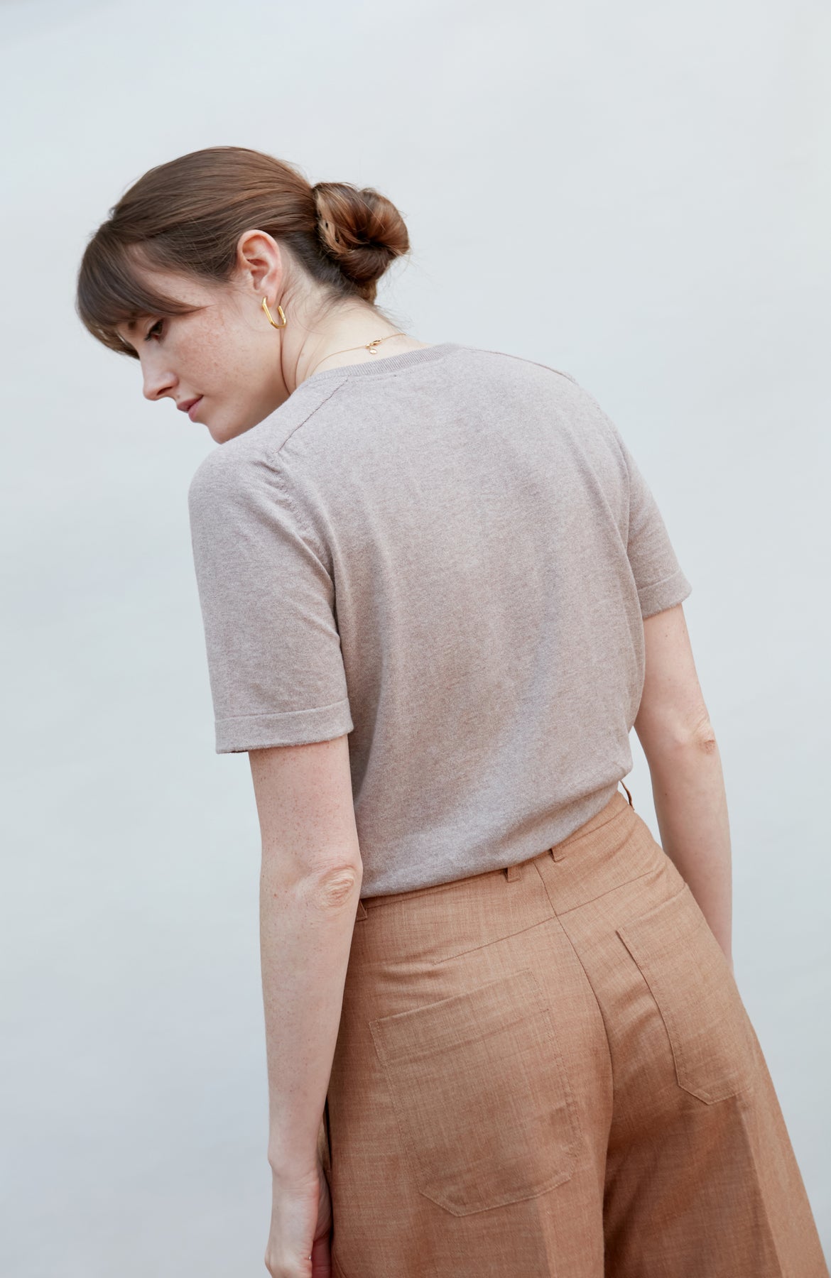 Expertly crafted with our super soft ultra-fine cotton, Cassie is an elevated knitted t-shirt and a seasonless must-have wardrobe essential for layering or wearing on its own. With its a saddle shoulder, classic crew neck and sleek hem trim, this t-shirt is made using a breathable single jersey knit to offer the utmost comfort and the tubular knitted hem and cuff provide a flattering straight fit. Available in a range of classic hues.